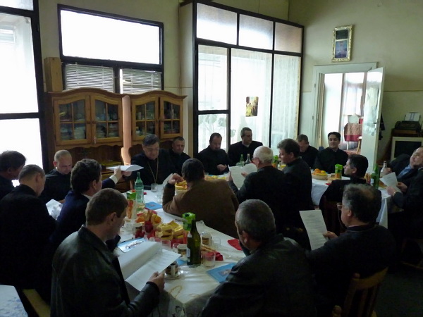 După prânzul oferit de protopopiatul gazdă la sediul său, pr. vicar mitropolitan Ioan Fărcaș a prezentat tema liturgisirea și celebrarea Vecerniei, insistând asupra unor detalii ce țintesc obținerea unei mai bune uniformizări rituale. S-au abordat și analizat apoi și alte teme pastorale și liturgice.