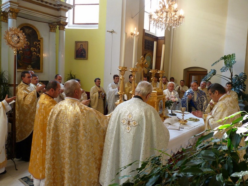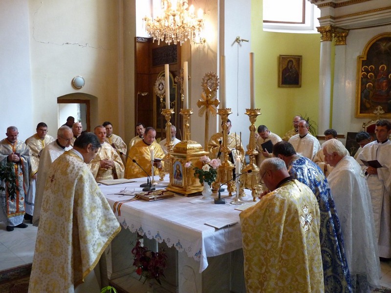 De la ora 10, preoţii au celebrat Sfânta Liturghie, prezidată de pr. Ioan Fărcaş, vicar mitropolitan şi protopopul Blajului.