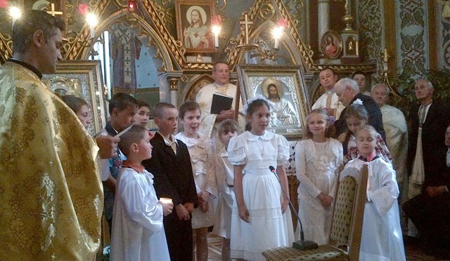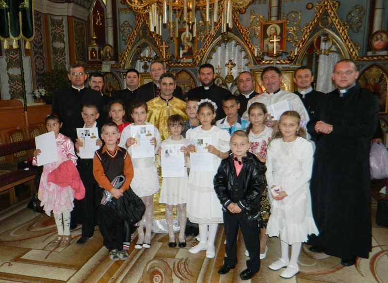 În continuare  Pr. paroh  Voicu a evidenţiat Importanţa sărbătorii comunităţii greco-catolice din Hodac prin care se aduce împreună cu toţi cei prezenţi cinste şi mărire Bunului Dumnezeu pentru încheierea lucrărilor de renovare a lăcaşului de cult, subliniind semnificaţia şi importanţa majoră pe care o are icoana episcopilor greco-catolici martiri, zugrăviţi pe peretele din antreul bisericii, exemple şi călăuze de credinţă, speranţă şi de iubire, purtători ai crucii în urmare lui Hristos până la sacrificiul  suprem. A mulţumit apoi tuturor celor care au ajutat la realizarea lucrărilor de renovare a lăcaşului de cult, tuturor binefăcătorilor bisericii, tuturor membrilor comunităţii greco-catolice din Hodac implicaţi în organizarea sărbătorii şi în mod special tuturor celor care au binevoit să se alăture comunităţii în rugăciune. A urmat un scurt program artistic care a constat în rostirea de către aceşti copilaşi a unor poezii Euharistice şi a unui cântecel ocazionat de Prima Împărtăşanie. La încheierea programului copilaşii au primit câte o diploma de Primă Împărtăşanie, rozare, iconiţe şi cărţi de rugăciuni, iar credincioşii participanţi, câte o iconiţă cu imaginea picturii Mântuitorului înconjurat de episcopii martiri, însoţită de rugăciunea de beatificare a  acestora, care să le păstreze vie memoria evenimentului.