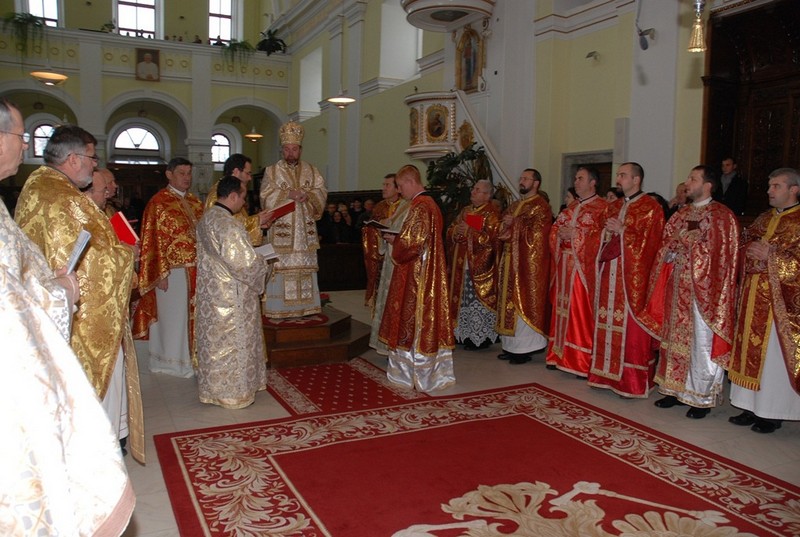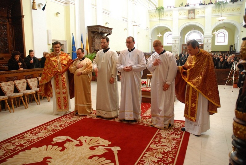 DSC_0265In data de 6 decembrie, cu ocazia sarbatorii sfantului Ierarh Nicolae, Preasfințitul Claudiu episcopul Curiei Arhiepiscopiei Majore, a celebrat Sfanta Liturghie in Catedrala „Sfanta Treime” din Blaj.  In cadrul Sfintei Liturghii, Preasfintitul Claudiu a binevoit, cu binecuvantarea Preafericirii Sale Cardinal Lucian, sa hirotoneasca patru noi lucratori în via Domnului, pe diaconii: Radu Vasile Rosu, Adrian Vestemean, Stelian Barbu si Samuel Fancsali.