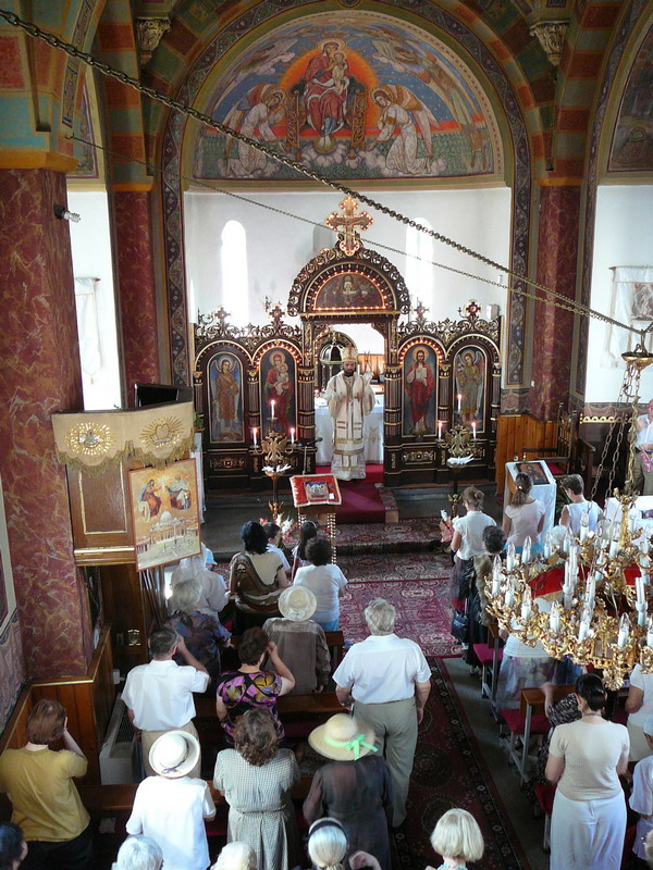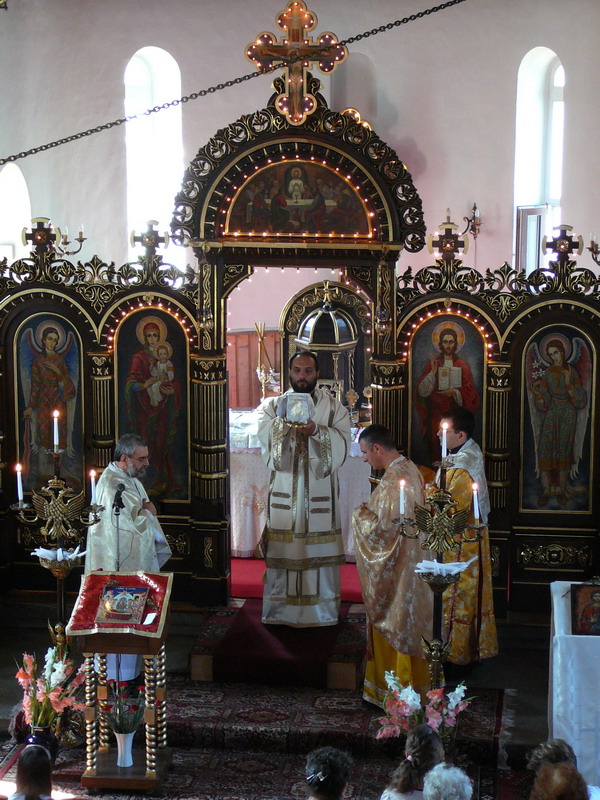 Arhiereul, alături de părintele paroh Constantin Oltean, pr. Silviu Moşneag, paroh al Parohiei „Naşterea Maicii Domnului” (Drumul Taberei), pr. Luc Duquenne SJ, superiorul Casei Sf. Claude de la Colombiere si pr. Michel Rimaud, profesor de exegeza la Şcoala biblica de la Ierusalim, au săvârşit Sf. Liturghie însoţind rugăciunea condusă de corala parohiei coordonată de doamna profesoară Mioriţa Got.
