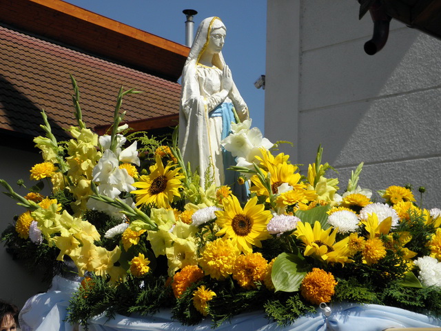 În timpul acestei celebrări a fost dusă în procesiune, în jurul bisericii, statuia Sfintei Fecioare Maria care a fost împodobită cu foarte multe flori şi purtată pe umeri de 4 bărbaţi, iar membrii Reuniunii Mariane împreună cu toţii credincioşii au intonat pricesne mariane.