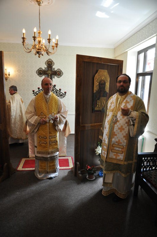 Parterul, prevăzut ca salon de protocol și reuniuni, este amenajat de azi în capelă pe perioada șantierului bisericii. Lucrările de la etajele I și II, dar și de la demisol sunt aproape de momentul recepției.