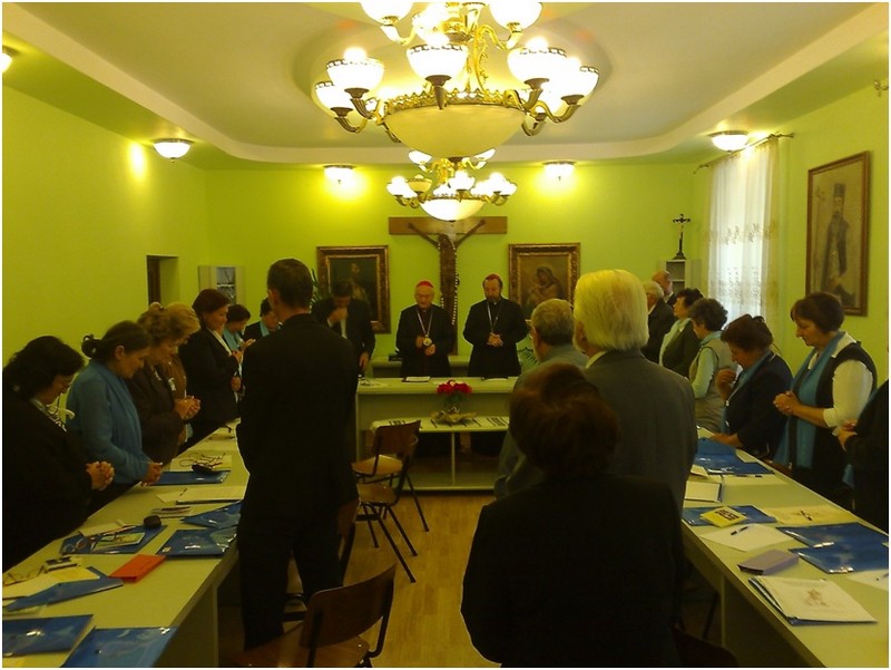 Marți, 5 septembrie, la orele 10,30 am avut bucuria să fim salutați și binecuvântați pe Preafericitul Cardinal Lucian, însoțit de Preasfințitul Claudiu, Episcopul Curiei Arhiepiscopiei Majore. Ierarhii ne-au adresat frumoase cuvinte de încurajare și sfaturi necesare. Alocuțiunea Preafericitului Lucian ne-a mișcat pe toți până la lacrimi. Amintind de momentul în care mama Preafericirii Sale, după ce a fost primită în Reuniunea Mariană în biserica parohială din Ferneziu, întorcându-se acasă, în familie, le-a spus copiilor ei (printre care și Preafericitul Lucian): De acum înainte să nu o mai supărați pe mama! Mutatis mutandis, plecând de la dorința mamei naturale, Preafericitul ne-a îndemnat pe noi, toți: Să nu o mai supărăm pe Mama! Evident, referindu-se la Mama noastră cerească, Preacurata Fecioară Maria.