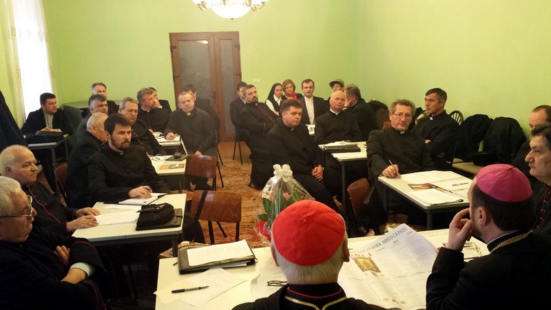 Întrunirea a fost binecuvântată şi prezidată de Preafericitul Arhiepiscop-Cardinal Lucian, care, după ce s-a făcut rugăcinea de început, a fost salutat şi omagiat la împlinirea, la 18 februarie, a doi ani de când Sfântul Părinte Papa Benedict al XVI-lea l-a creat cardinal. Un moment emoţionant, moment pe care Preasfinţitul Claudiu l-a sublimizat într-o frumoasă şi edificatoare meditaţie.