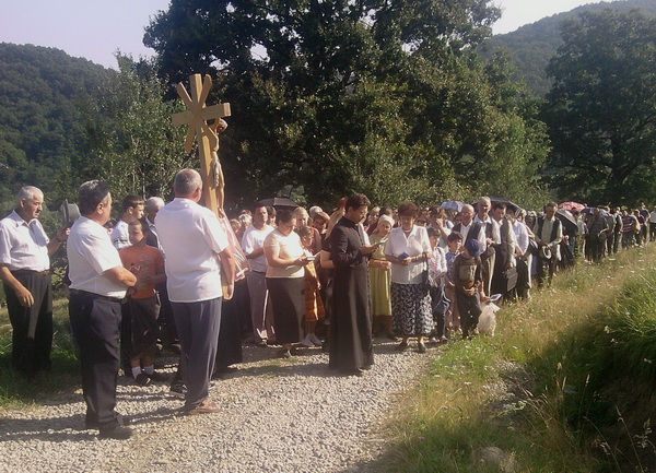 Chiar dacă a fost duminică şi sărbătoarea noi am oficiat calea Sfintei Cruci ca amintire a suferinţei pe care a purtat-o in inimă Maica Domnului când a parcurs Calea Crucii alături de Fiul său scump care după suferinţă la fel ca şi Preasfânta Sa Maică a primit răsplata, a primit Gloria Cerească, sa înălţat de pe Pământ cu trupul la Cer devenind Mama tuturor creştinilor, Maica tuturor popoarelor, Regina Cerului şi a Pământului. Un alt motiv al acestui parcurs este că suferinţa Biserici Române Unite nu s-a încheiat incă, ea nu are o libertate deplină şi nu este repusă în drepturi pe deplin. Prigoana pentru ea incă nu s-a terminat, drumul crucii pentru ea este încă prezent, actual.