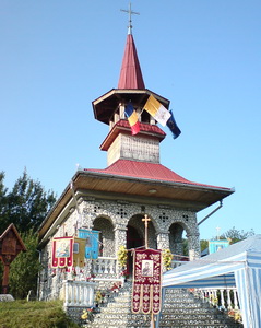 In cuvântul de mulţumire către pelerini care au avut curajul şi tăria să înfrunte arşiţa, părintele organizator a amintit semnificaţia steagurilor ce fluturau pe turnul biserici din care reţinem semnificaţia cheilor de pe steagul papal care ţin mereu uşa Raiului închisă şi o deschid doar celor vrednici care ţin poruncile şi merg în căile Domnului menţionând că poarta Iadului este de asemenea mereu larg deschisă pentru toţi cei care nu ascultă de Domnul şi nu vor să-l urmeze, îndemnândui să se ferească de aceasta, să-l urmeze mereu pe Domnul, prin rugăciune către Preasfânta sa Maică până vor ajunge şi sufletele lor la Cer.