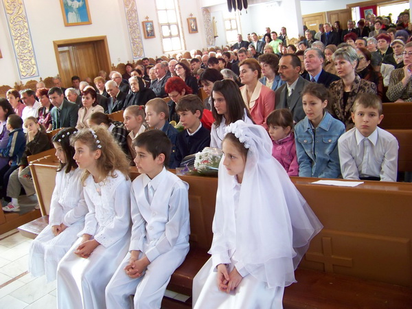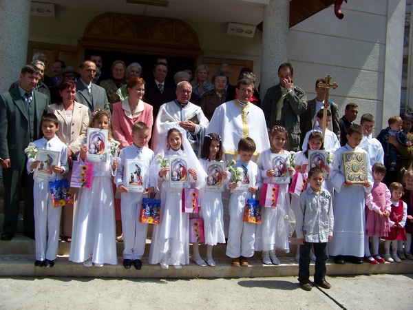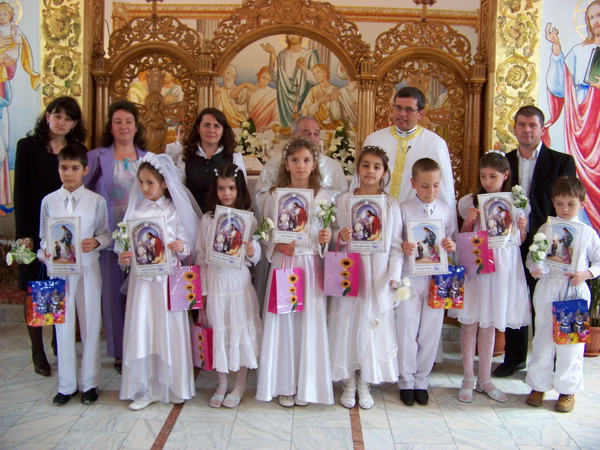 Cei opt copilaşi au prezentat un scurt program cu poezii şi cântece specifice acestui moment şi au fost acompanieţi de ceilalţi copii din parohie care au participat cu trup şi suflet alături de prietenii lor. A fost un moment încărcat de emoţie şi pentru copiii care au făcut deja Prima Împărtăşanie, amintindu-şi momentul respectiv şi pentru cei mai mici, care, văzând frumuseţea evenimentului, aşteaptă cu nerăbdare să poată şi ei să facă acest pas important din viaţa lor.