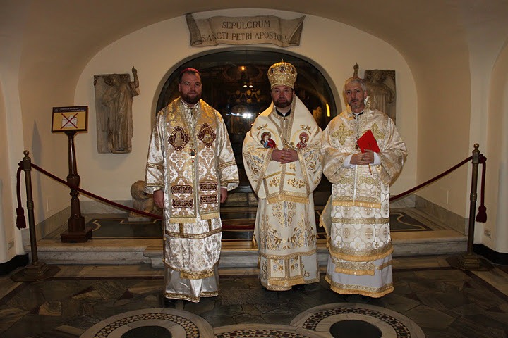 Preasfinţia Sa Claudiu Lucian Pop, noul Episcop al Curiei Arhiepiscopiei Majore a Bisericii Greco-Catolice din România, a celebrat sâmbătă 10 decembrie 2011 Dumnezeiasca Liturghie în Bazilica Sfântul Petru din Roma la mormântul Sfântului Apostol Petru. El este cel care a primit de la Mântuitorul misiunea de a-i întări pe fraţii săi, şi pe care Mântuitorul a clădit Biserica Sa, murind moarte de martir.