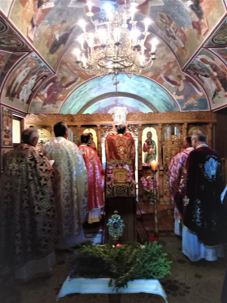 Programul liturgic a cuprins Utrenia, urmată de venerarea unei relicve a Sfintei Cruci păstrată la Schit și Sfânta Liturghie pontificată de Părintele Nicolae Anușcă, reprezentantul Preafericitului Părinte Lucian alături de părintele arhimandrit Cornel Dîrle, preotul Schitului și de alți cinci preoți (protopopul de Borşa, Marius Mureşan, protopopul de Târnaveni, Sorin Ivan, venit cu un grup de credincioşi din Cetatea de Baltă, protopopul de Gheorgheni-Reghin-Teaca, Adrian Lung, preot Dr. Mihai Ștefănescu, venit cu cantorul sau, preotul paroh din Sărmaş, Vasile Frăsinaru), oaspeți obișnuiți care împărtășesc pe deplin idealul ecumenic propus de surorile carmelite.