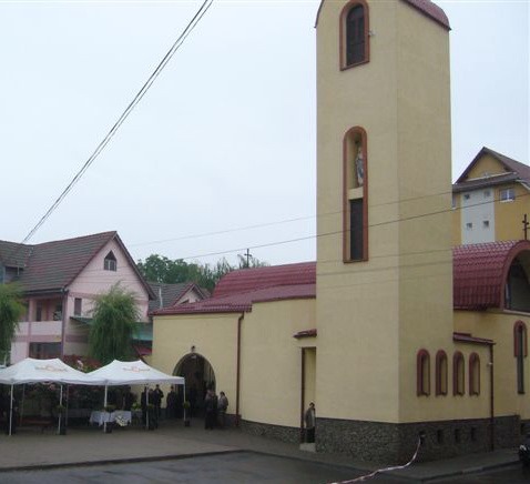 Proiectul bisericii a fost conceput de către Arhitectul Filimon Grigore din Alba Iulia. Construcția bisericii, s-a realizat între anii 2005, s-a început în data de 13 Iunie (ziua Sf Anton de Padova) și s-a terminat în anul 2008, când pe 21 Noiembrie de ziua „Intrării în Biserică a Maicii Domnului” s-a intrat în noua biserică binecuvântata atunci de trimisul Mitropoliei de Blaj, părintele Vicar Ioan Fărcaș. În același an, parohul comunității, pr. Adrian Dobrin i-a încredințat tânărului preot Radu Roșu – discipol al maestrului Ivan Rupnik SJ – misiunea realizării în mozaic a iconografiei iconostasului și a pereților laterali ai bisericii.