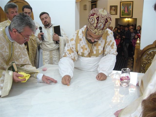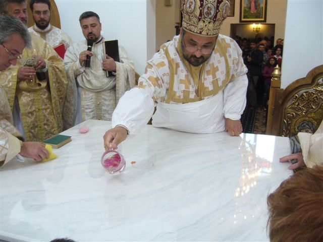 Preasfinția Sa a întemeiat Sfânta Masă a altarului bisericii, așezând în piciorul acesteia moaștele Fericitului Martir, Vladimir Ghika, piatra fiind sigilată cu inelul Episcopal.