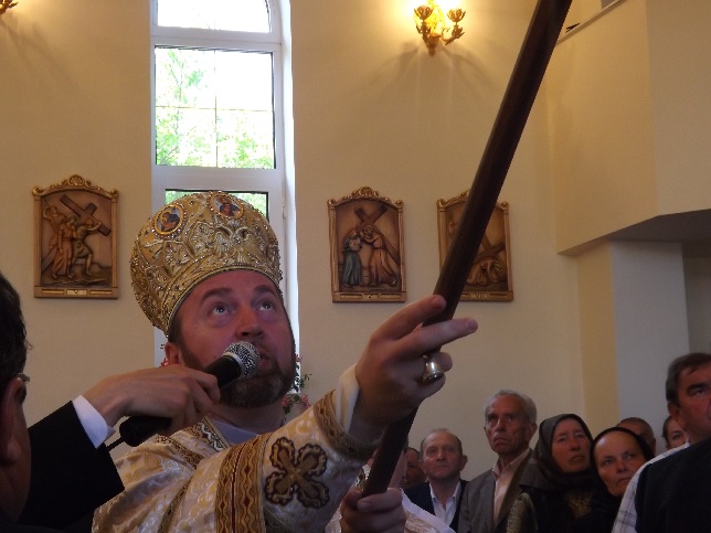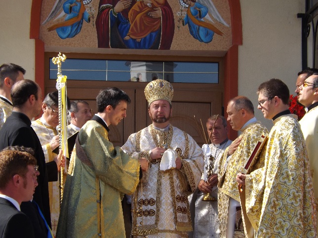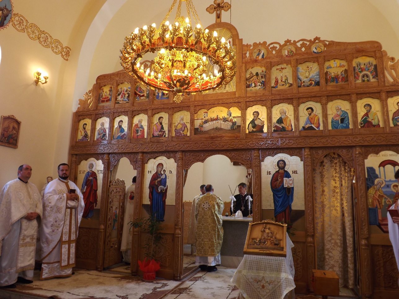 După sfințirea noului și frumosului lăcaș de cult, a urmat Sfânta și Dumnezeasca Liturghie la care au concelebrat 28 de preoți și au participat peste trei sute de credincioși, printre aceștia numărându-se și membri ai comunității ortodoxe din localitate însoțiți de preotul lor.