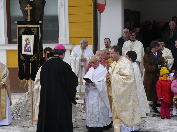 Celebrarea oficiului de sfinţire precum şi Sfânta Liturghie care a urmat, au fost prezidate de către Preasfinţia Sa Vasile Bizău, episcop al Arhiepiscopiei Blajului, împreună cu un colegiu format din peste douăzeci de preoţi reprezentând majoritatea clerului din protopopiatul de Târgu-Mureş, preoţi din alte protopopiate mureşene, reprezentanţi ai Mitropoliei dar şi ai confesiunilor creştine din oraş. Am apreciat în mod deosebit prezenţa părintelui protopop Gheorghe Şincan, din partea comunităţii ortodoxe, cea a părintelui protopop Olah Denes, din partea comunităţii romano-catolice precum şi pastori reformaţi, unitarieni şi luterani.