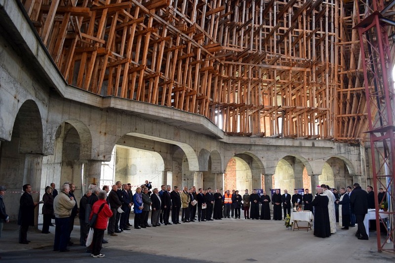 „La acest moment de bucurie se cuvine să amintim cu pioșenie pe ctitorii și începătorii acestui proiect din perioada 1990 – 1991, ei înșiși mărturisitori ai credinței în închisorile comuniste. În primul rând, Înaltpreasfințitul Arhiepiscop ad personam George Guțiu, care odihnește aici în criptă – în mod simbolic este sămânța sfântă la fundamentul acestei catedrale -, atunci Arhipăstorul Eparhiei de Cluj-Gherla, precum și Mons. Tertulian Langa, Vicar general atunci, care au ales să colaboreze cu arhitecții și cu inginerii firmei SC Cathedral Project. Piatra de temelie a fost pusă și binecuvântată de IPS George Guțiu în aul 1991. Adresez un cuvânt de stimă și recunoștință acelora care ne-au încurajat și sprijinit în reluarea construcției Catedralei, după cei 12 ani de stagnare din perioada 1997 – 2009 și amintesc două nume, cel al ing. Podoabă Vasile, un entuziast constructor care este aici împreună cu noi și, de asemenea, al ing. David On și el un inginer priceput care a găsit multe soluții inedite pentru construcție, între care și arhitectura de lemn pentru susținerea inelului superior.”