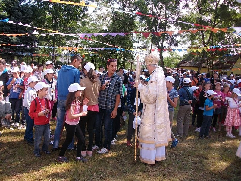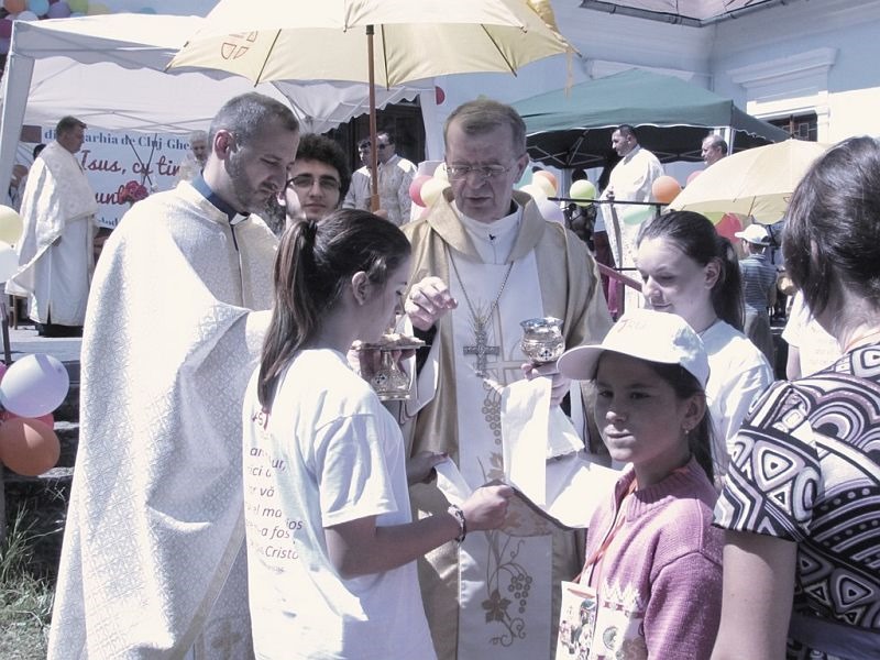 La începutul Sfintei Liturghii, PS Florentin Crihălmeanu, Episcopul eparhial, şi PS Cornel Damian, Episcopul auxiliar al Arhidiecezei Romano-Catolice de Bucureşti, i-au salutat pe toţi cei prezenţi, în mod special pe copii. Cuvântul de învăţătură al Preasfinţitului Florentin a fost un dialog cu copiii, în cadrul căruia i-a invitat să îşi deschidă „poarta sufletului larg ca să poată intra Cristos”. Răspunsurile la Sfânta Liturghie au fost date de corul de copii „Allegria” al capelei Sf. Iosif din Cluj-Napoca.