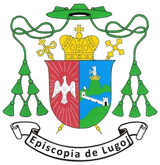 Sub scut este aşezată o panglică de culoare albă pe care este scris „Episcopia de Lugoj”.