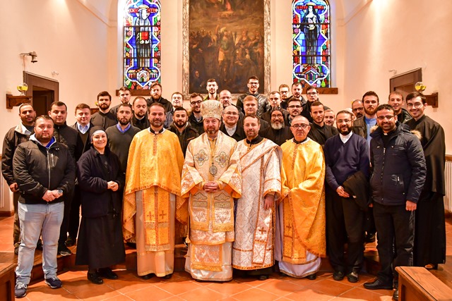 La invitaţia rvs. pr. Gabriel Buboi, Rectorul Colegiului Pontifical „Pio Romeno”, reculegerile spirituale din acest an au fost conduse de Preasfinția Sa Claudiu Pop, Episcop al Curiei Arhiepiscopiei Majore a BRU.