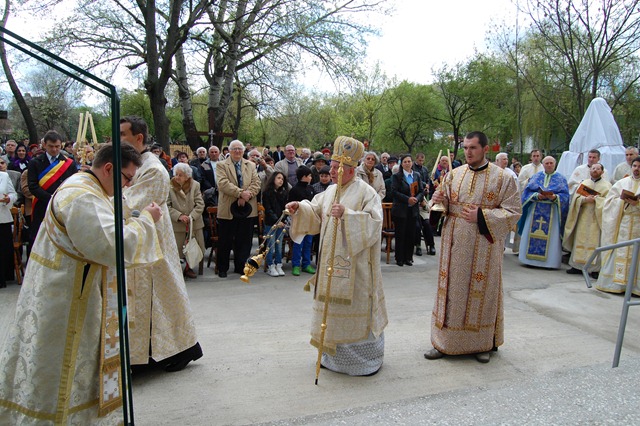 Sfânta Liturghie arhierească, precedată de un cuvânt de bun venit de către Pr. paroh al Reşiţei cu sublinierea importanţei evenimentului, a început la ora 11,00 şi s-a celebrat pe esplanada din faţa bisericii. Au pontificat cei doi arhierei. Împreună au concelebrat aproximativ 25 de preoţi şi 3 diaconi iar răspunsurile liturgice au fost date de seminarişti. La Sfânta Liturghie luat parte alături de numeroşii credincioşi din Reşiţa şi protopopiat, un grup de 200 de pelerini veniţi din Eparhia de Oradea, printre care elevii de la liceul „Don Orione”, studenţi la Institutul Teologic şi credincioşi.