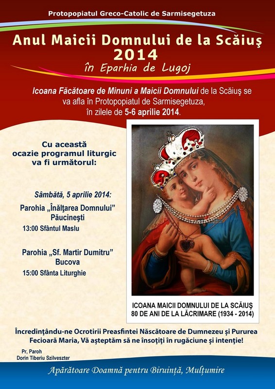 Anunţ: pelerinaj cu Icoana Maicii Domnului de la Scăiuş în parohiile Bucova şi Păucineşti