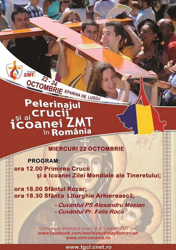 Crucea şi icoana Zilelor Mondiale ale Tineretului au vizitat ţara noastră în timpul Întâlnirii Naţionale a Tineretului Catolic de la Oradea (6 – 10 august 2003). Pentru câteva zile tinerii români au putut fi în jurul crucii care a marcat destinele a multor tineri de vârsta lor. Pentru prima dată, în perioada 15 octombrie – 1 noiembrie, crucea şi icoana vor fi în pelerinaj prin toate diecezele şi eparhiile ţării noastre. Ca pregătire pentru Ziua Mondială a Tineretului de la Cracovia, ce va avea loc în anul 2016, aceste simboluri parcurg în această perioadă un pelerinaj prin ţările din nordul şi estul Europei. După Belarus, Lituania, Letonia, Rusia şi Ucraina, crucea şi icoana Zilelor Mondiale ale Tineretului vor ajunge în Republica Moldova, de unde vor fi preluate de un grup de tineri din România în ziua de 14 octombrie a.c., sărbătoarea Sfintei Fecioare Maria, Maica Bunului Sfat, patroana Diecezei de Chişinău.