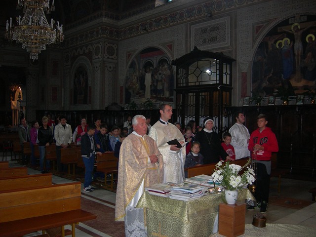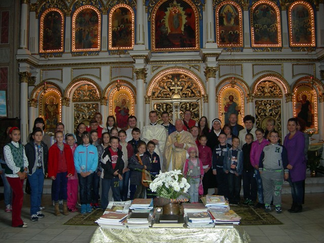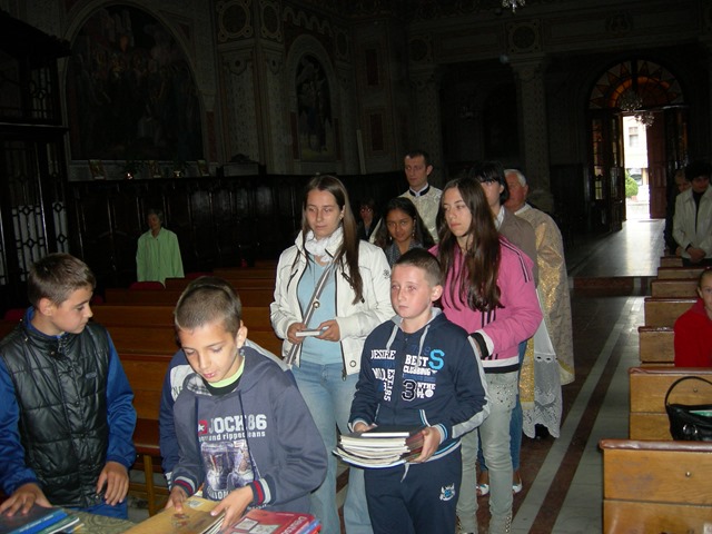 S-a celebrat Sfânta Liturghie, elevii au dat răspunsurile, dar pe rând au mers la confesional, pentru a se curăţa de păcate prin grija Pr. Robert Trubiansky. Toţi s-au împărtăşit cu Sfântul Trup şi Sânge a Lui Isus Cristos, cerând cu umilinţă şi cu simplitatea de copil harurile şi ajutorul de care au nevoie în noul an şcolar.
