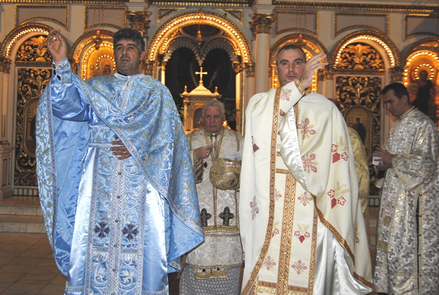 Astfel, la Sfânta Liturghie, alături de Prea Sfinţitul Alexandru, au concelebrat un sobor de opt preoţi cărora li s-au alăturat cei doi noi-hirotoniţi. Răspunsurile liturgice au fost date de corul catedralei „Reînvierea” condus de D-na Prof. Olimpia Drăgan.