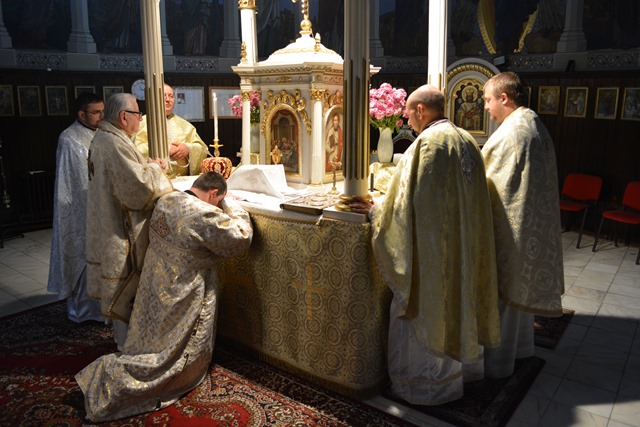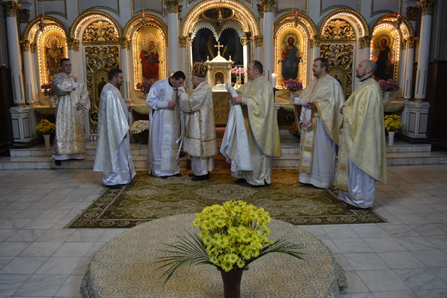 La Sfânta Liturghie alături de Prea Sfinţitul Alexandru au concelebrat Mons. Angelo-Narcis Pop, Vicar General, pr. Silviu Bindea, Protopop de Orăştie, pr. dr. Viorel Codrea, paroh la Cugir, pr. Mihai Enyedi, paroh la Pricaz. Răspunsurile liturgice au fost date de corul „Reînvierea” al catedralei, dirijat de d-na Prof. Olimpia Drăgan.