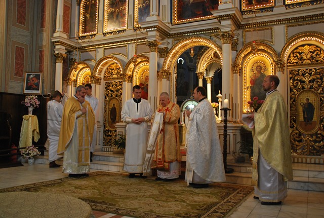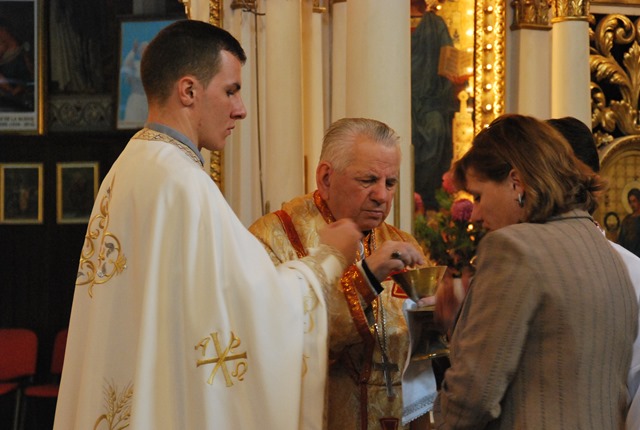 La Sfânta Liturghie alături de Prea Sfinţitul Alexandru au concelebrat Mons. Angelo-Narcis Pop, Vicar General, pr. prot.on. Ioan Pop, parohul catedralei şi pr. Mihai Gherghel, paroh la Vârşeţ.