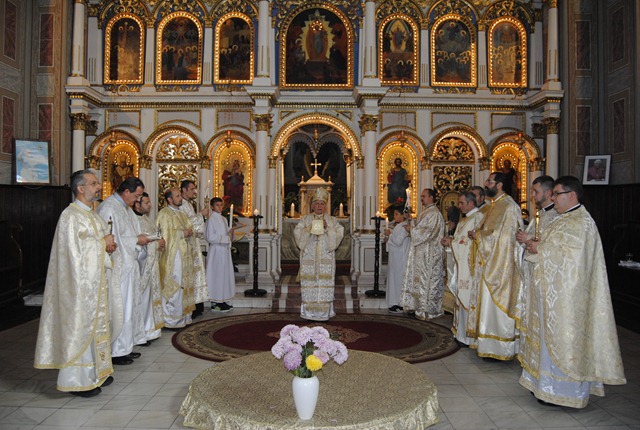 La Sfânta Liturghie alături de Prea Sfinţia Sa Episcop Alexandru Mesian au concelebrat: mons. Angelo-Narcis Pop, Vicar general al eparhiei de Lugoj, pr. drd. Iuliu Muntean, Vicar judecătoresc al eparhiei de Oradea, pr. Eduard Felician Fischer, Vicerectorul Seminarului Teologic „Sfinţii Trei Ierarhi” din Oradea, pr. Alexandru Ploştinaru, Vicar judecătoresc al eparhiei de Lugoj, pr. Nicolae Teodorescu, consilier eparhial şi protopop de Timişoara, pr. Davide Giuseppe Muntoni, superiorul comunităţii monastice „Preasfânta Treime” din Giroc, Jud. Timiş, pr. prot. on. Ioan Pop, parohul catedralei, pr. Cristian Chişvasi şi pr. Flavius Jurca, paroh la Oţelu Roşu. Răspunsurile liturgice au fost date de corul „Reînvierea” al catedralei, dirijat de d-na Prof. Olimpia Drăgan.