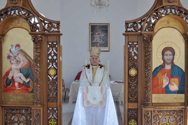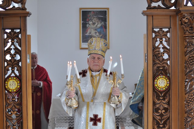Sfânta Liturghie a fost pontificată de PS Alexandru. Alături de Prea Sfinţia Sa au concelebrat: Mons Angelo-Narcis Pop, Vicar General, pr. Protopop Teodor Baba şi pr. Iulian Hasciar, parohul locului. Răspunsurile au fost date de credincioşii din Scăiuş şi de un grup de corişti ai catedralei din Lugoj, dirijaţi de d-na Olimpia Drăgan.