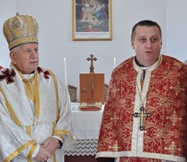 La sosire PS Alexandru a fost întâmpinat de pr. Teodor Baba, consilier eparhial şi protopop de Lugoj împreună cu pr. Iulian Hasciar, parohul locului.