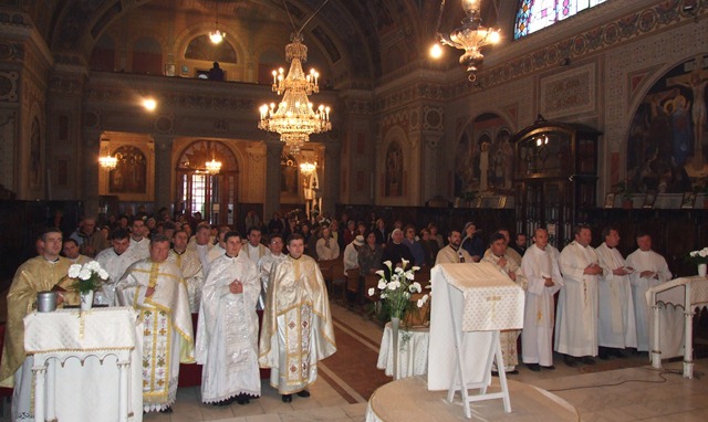 La Sfânta Liturghie au concelebrat preoţii catolici de ambele rituri prezenţi la întâlnire, din cele 11 Eparhii şi Dieceze catolice din România.