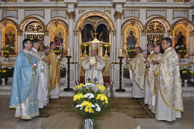 Prima temă a programului a fost meditația ”De unde această onoare ca Maica Domnului meu să vină la mine?” (Luca 1, 43) susținută de părintele Cristian Chișvasi, după care am plecat împreună spre Catedrala Episcopală Coborârea Spiritului Sfânt, pentru Sfânta și Dumnezeiasca Liturghie. În monumentala catedrală, Preasfințitul episcop Alexandru a ținut un cuvânt de învățătură în care a subliniat rolul Maicii Domnului ca model autentic de trăire creștină a credinței, blândeții și iubirii. Această contemplare a Sfintei Fecioare, împodobite cu plinătatea harului a dus la asocierea multor persoane devotate Maicii Domnului în Reuniunile Mariane pentru a sluji după exemplul ei Bisericii Domnului nostru Isus Hristos. Răspunsurile la Sfânta Liturghie au fost date cu multă măiestrie și dăruire de corul catedralei dirijat de doamna prof. Olimpia Drăgan. Această primă zi s-a încheiat cu cina oferită din bunăvoința Preasfinției Sale.