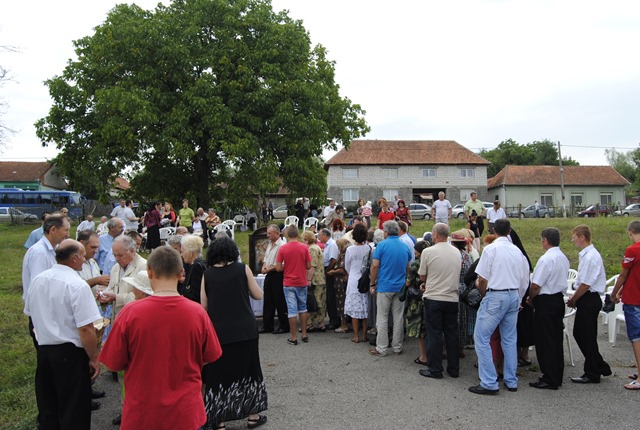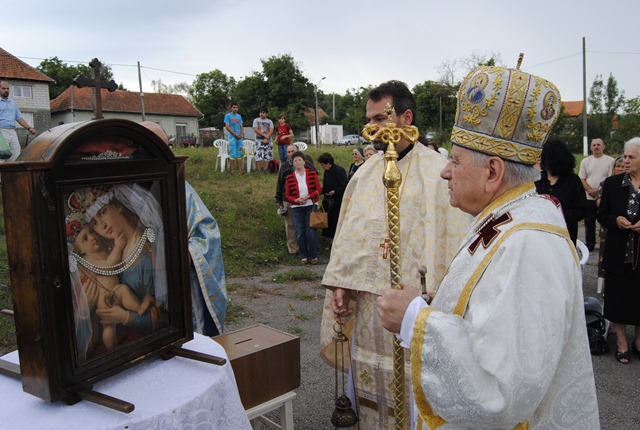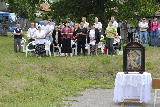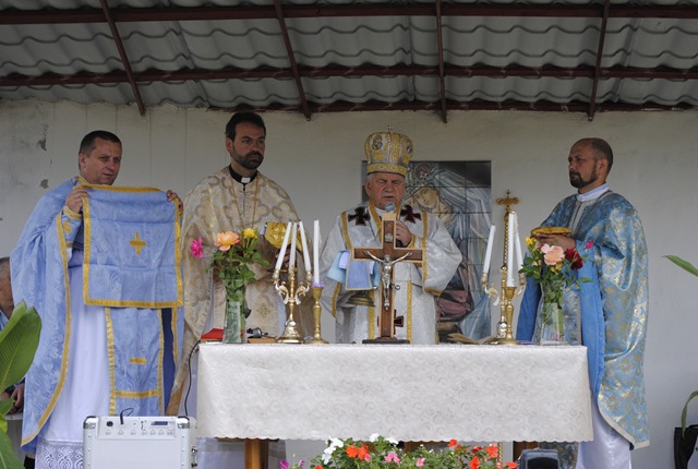 La sosire P.S. Alexandru a fost întâmpinat cu Sfânta Evanghelie de pr. Iulian Hasciar, parohul locului. A urmat apoi o procesiune cu Icoana care a lăcrimat. Aceasta a fost adusă din biserică şi expusă în dreapta altarului special amenajat în aer liber. Înainte de începerea Sfintei Liturghii s-a rostit de către toţi cei prezenţi rugăciunea Sfântului Rozar. Alături de Prea Sfinţitul Alexandru Mesian au concelebrat: Mons. Angelo-Narcis Pop, Vicar General, rvs. pr. Gabriel Buboi, rectorul Colegiului Pontifical „Pio Romeno” din Roma şi pr. Iulian Hasciar, parohul locului. Răspunsurile au fost date de Corul „Reînvierea” al catedralei din Lugoj, dirijat de d-na Prof. Olimpia Drăgan.