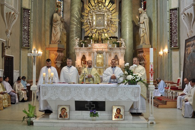 Programul a început la orele 10.00 cu rugăciunea Sfântului Rozar. La orele 10.30 a urmat Sfânta Liturghie solemnă. Alături de Mons. Angelo-Narcis Pop, Vicar General au concelebrat: pr. Radu Vorindan, protopop de Arad, pr. Doinel Preda, protopop de Haţeg, pr. Flavius Manuel Jurcă, protopop de Sarmisegetuza şi un sobor de 16 preoţi. Răspunsurile la Sfânta Liturghie au fost date de corul de tineret al parohiei „Sfânta Maria Regina Păcii” din Timişoara.