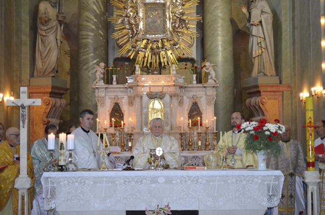 În Cuvântul de Învăţătură Prea Sfinţia Sa a vorbit despre istoricul bazilicii, care a fost construită în urmă cu 256 de ani şi la care anual vin foarte mulţi pelerini. Icoana Maicii Sfinte cu Pruncul Isus este tipărită pe hârtie. În mod miraculos icoana nu a ars în timpul incendiului din anul 1695 când soldaţii otomani au asediat cetatea Lipova şi au incendiat inclusiv capela franciscanilor situată pe dealul de dincolo de Mureş, în Radna. Această icoană domină şi astăzi Bazilica Maria Radna.