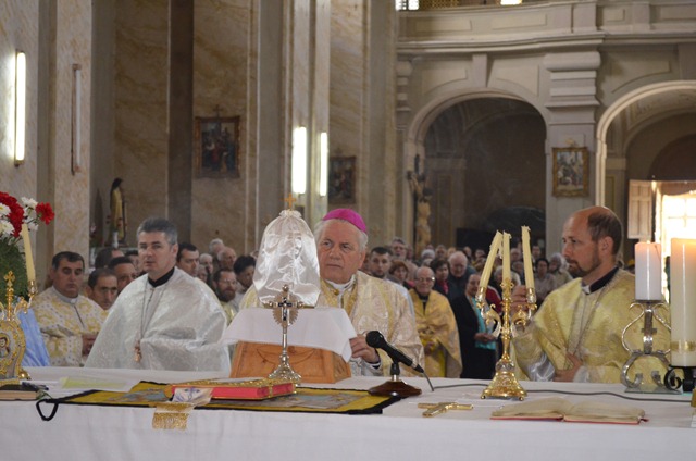 Programul a început la orele 10.30 cu rugăciunea Sfântului Rozar şi a Litaniei Lauretane. La orele 11.00 a urmat Sfânta Liturghie arhierească. Alături de P.S. Alexandru au concelebrat 30 de preoţi dintre care amintim: mons. Angelo-Narcis Pop, Vicar General al Eparhiei de Lugoj, pr. Radu Vorindan, protopopul Aradului, pr. Nistor-Chişbora, prelat papal şi protopop emerit, pr. Radu Farcaş, prelat papal, pr. Prot. Nicolae Teodorescu, Vicar foraneu de Timişoara şi Consilier eparhial, pr. Teodor Baba, protopop de Lugoj, pr. Silviu Lucian Bindea, Protopop de Orăştie, pr. Prot. Micu Ceciliu, protopop de Deva. Răspunsurile la Sfânta Liturghie au fost date de corul: „Reînvierea” al catedralei din Lugoj, de corul „Magnificat” al parohiei „Naşterea Sfintei Fecioare Maria” din Arad, şi de corul parohiei „Sfântul Iosif” din Timişoara