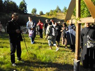 Până la Zlatna, drumul cu mașinile personale și cu autocarul s-a scurs repede, serpentinele și pădurile ce străjuiesc șoseaua de-o parte și de cealaltă amintesc că urcăm spre bazinul aurifer al Munților Apuseni. Odată ajunși, pelerinii au fost întâmpinaţi de d-lul Nicolae Lerinți și un alt grup de pelerini din localitate și nu numai.