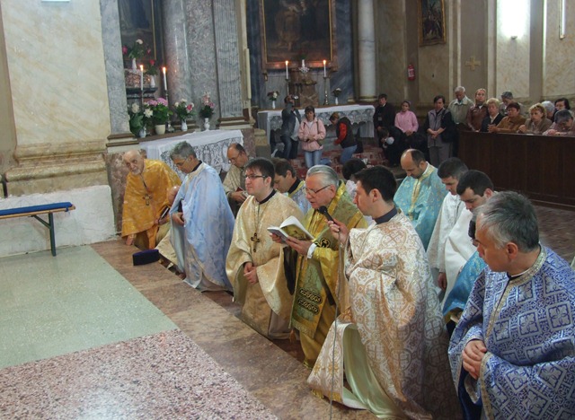 Programul a început la orele 10.30 cu rugăciunea Sfântului Rozar. La orele 11.00 a urmat Sfânta Liturghie solemnă. Alături de P.S. Alexandru au concelebrat: Rvs. Pr. Nistor-Chişbora, prelat papal şi protopop emerit, Rvs. Pr. Radu Vorindan, protopopul Aradului, Rvs. Pr. Prot. Nicolae Teodorescu, Vicar foraneu de Timişoara şi Consilier eparhial, Pr. Drd. Coriolan C. Mureşan, Vicar Judecătoresc al Eparhiei de Lugoj şi un sobor numeros de preoţi. Răspunsurile la Sfânta Liturghie au fost date de corul parohiei „Sf. Iosif” din Timişoara şi de corul liceului de muzică „Sabin Drăgoi” din Arad.