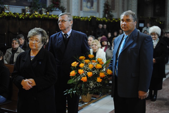 Momentele de sărbătorire au continuat a doua zi, duminică, 19 ianuarie, în catedrala „Coborârea Sfântului Spirit” în cadrul Sfintei Liturghii Arhiereşti, unde, alături de P.S. Alexandru au concelebrat: Mons. Angelo-Narcis Pop, Vicar General, pr. Teodor Baba, protopop de Lugoj şi pr. ieromonah Atanasie Muntoni, stareţul mănăstirii „Prea Sfânta Treime”, Giroc. La sfârşitul Sfintei Liturghii, Mons. Angelo-Narcis Pop i-a adresat ierarhului lugojean urări din partea clerului şi a persoanelor consacrate din Eparhia de Lugoj, din partea credincioşilor şi din partea tuturor colaboratorilor Prea Sfinţiei Sale. Prea Sfinţia Sa a primit mai multe buchete de flori atât din partea corului, cât şi a credincioşilor. Pr. Atanasie a venit, însoţit de un grup de credincioşi timişoreni care fac parte din Reuniunea Mariană, printre aceştia fiind d-na ec. Terezia Pintea, preşedinta eparhială a Reuniunii Mariane. La final, Prea Sfinţitul Alexandru a mulţumit mai întâi bunului Dumnezeu şi Prea Curatei Fecioare Maria pentru toate harurile primite în această viaţă; a mulţumit părinţilor săi; a mulţumit colaboratorilor şi corului pentru aceste momente. De asemenea a mulţumit şi tuturor celor care l-au felicitat şi adresat rugăciuni.