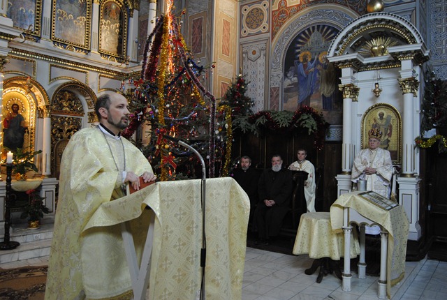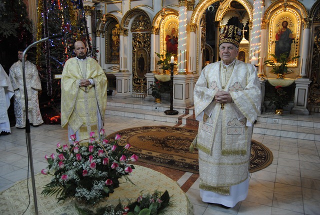 Momentele de sărbătorire au continuat duminică, 20 ianuarie 2012, în catedrala „Coborârea Sfântului Spirit” în cadrul Sfintei Liturghii Arhiereşti, unde, alături de P.S. Alexandru, au concelebrat: Mons. Angelo-Narcis Pop, Vicar General, pr. Teodor Baba şi pr. Cristian Chişvasi