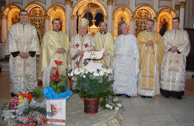 Prea Sfinţia Sa Alexandru Mesian, Episcop eparhial de Lugoj, a împlinit duminică, 22 ianuarie a.c., venerabila vârstă de 75 de ani. Deja în săptămâna premergătoare acestei zile festive, Prea Sfinţitul Părinte Episcop a fost felicitat în mai multe rânduri. Astfel, în ziua de 10 ianuarie 2012 cu ocazia reuniunii lărgite a colegiului consultorilor eparhiali, a fost sărbătorit în cadrul acestei întâlniri. În ziua de 17 ianuarie 2012, la reşedinţa episcopiei a avut loc o recepţie oferită de P.S. Alexandru, eveniment la care au participat colaboratorii de la Centrul eparhial: preoţii din Curia Episcopală şi laicii care îşi desfăşoară activitatea în cadrul Episcopiei Greco-Catolice de Lugoj.