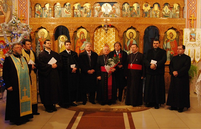 În seara zilei de 21 ianuarie a.c., la reşedinţa Episcopiei de Lugoj a avut loc o recepţie, am putea spune cu caracter ecumenic, oferită de P.S. Alexandru. La eveniment au luat parte reprezentanți ai autorităţilor locale: d-l primar Francisc Boldea, d-l Sorin Stragea, deputat de Timiş, d-l ing. Marius Martinescu, fost primar al Municipiului Lugoj, reprezentanţii comunităţilor religioase din Lugoj, respectiv: P.On. Pr. Prot. Ioan Cerbu, protopopul ortodox român al Lugojului; P.On. Pr. Ilie Albiciuc, protopopul ortodox ucrainean al Lugojului; Rvs. Pr. Mihail Titi Dumitresc, decan şi parohul romano-catolic al Lugojului; P.C. Pr. Daniel Lunic, capelanul parohiei romano-catolice din Lugoj; d-l Ionel Tuţac, pastor al Bisericii Baptiste „Harul” din Lugoj; d-l Ivan Bloch, preşedintele comunităţii evreieşti din Lugoj; Surorile de Caritate din Ordinul Sfintei Ioana Antida; Surorile din Ordinul Sfântului Vasile cel Mare. De asemenea, la recepţie a participat şi d-l Heinrich Brinker, preşedintele Initiative Kreis „Hilfe für Rumänien” din Rheine (Germania), vechi prieten şi colaborator al Episcopiei de Lugoj, consilier de onoare al parohiei greco-catolice Lugoj I. Din partea Episcopiei de Lugoj au fost prezenţi Rvs. Mons. Angelo-Narcis Pop, Vicar general; P.On. Pr. Teodor Baba, consilier eparhial şi protopop greco-catolic al Lugojului; Rvs. Pr. dr. Marius-Petru Pop, consilier eparhial şi secretar eparhial, P.On. Pr. Ioan Pop, parohul catedralei din Lugoj şi Pr. Robert Trubiansky, paroh la Păru. De-asemenea, ca în fiecare an, la recepţie a participat şi Corul „Reînvierea” al catedralei greco-catolice lugojene, dirijat de d-na prof. Olimpia Drăgan, care i-au încântat pe cei prezenţi cu interpretarea unor frumoase cântece bisericeşti dar şi laice.