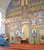 P.On. Pr. Marius Pîrvu, consilier eparhial şi protopop de Sânnicolau Mare împreună cu teol. dr. Sergiu Soica le-a prezentat credincioşilor gânduri despre personalităţile episcopilor noştri, făcând referiri la fiecare carte din colecţie şi la volumul comun, în contextul Anului Credinţei.