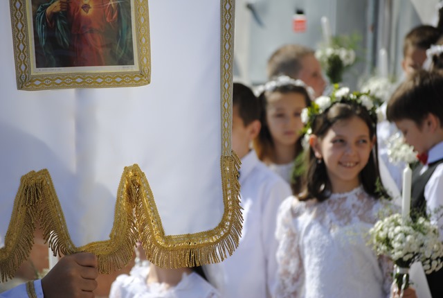 Înainte de rostirea Crezului, copiii pregătiţi pentru prima împărtăşanie împreună cu toţi credincioşii prezenţi la Sfânta Liturghie au reînnoit promisiunile de la Botez.