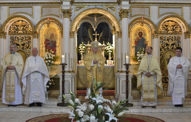 Sfânta Liturghie a fost pontificată de P.S. Alexandru care i-a avut alături pe: Mons. Angelo-Narcis Pop, Vicarul general al Eparhiei de Lugoj, pr. Teodor Baba, Protopop de Lugoj, pr. prot. on. Pr. Ioan Pop, parohul catedralei şi pr. dr. Vasile Orghici. Răspunsurile au fost date de corul catedralei „Reînvierea”, dirijat de D-na prof. Olimpia Drăgan.