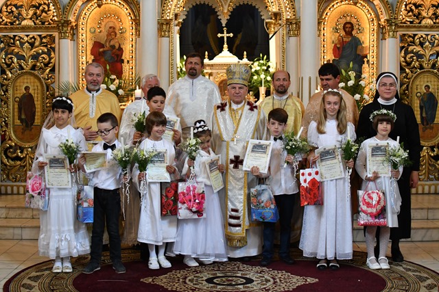 În dimineaţa zilei de sâmbătă, 11 iunie a.c. elevii s-au spovedit. Duminică, 12 iunie, copiii îmbrăcați frumos pentru prima împărtăşanie, alături de alţi copii şi tineri, au pornit în procesiune de la Casa Memorială „Episcop Ioan Ploscaru”, spre catedrală fiind însoţiţi de Sora Valeria OSBM, şi de preoţi. Catedrala a fost împodobită cu multe flori de Sr. Rafaela Ferenț care pune mult suflet în tot ceea ce face ca sacristană.