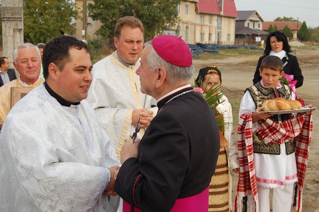 La sosire, Prea Sfinţitul Părinte Episcop Alexandru a fost întâmpinat în faţa bisericii cu pâine, sare şi flori de pr. Baba Teodor, Protopopul Lugojului, pr. Paroh Ovidiu Brîndău şi alţi preoţi împreună cu copiii îmbrăcaţi în porturi populare şi credincioşii din localitate, dar şi din alte localităţi învecinate.