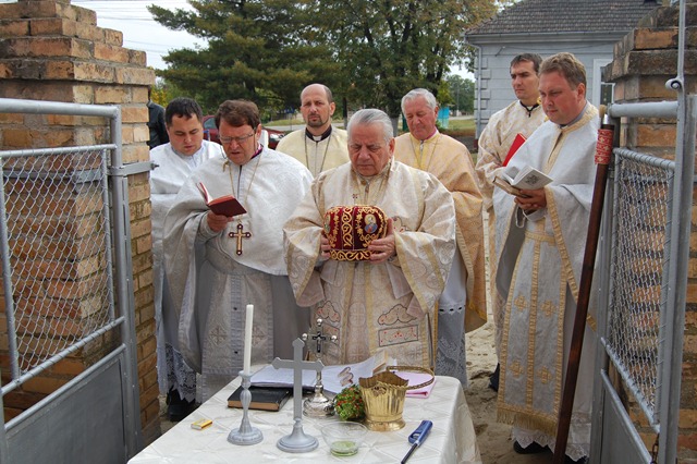 Ceremonia religioasă a început la orele 10.30 cu oficiul sfinţirii apei, după care a urmat binecuvântarea bisericii, prin stropirea cu apă sfinţită şi ungerea zidurilor exterioare cu sfântul şi marele mir, în formă de cruce. După ceremonia de sfinţire, a urmat Sfânta Liturghie Arhierească. Alături de Prea Sfinţitul Alexandru s-au aflat: Mons. Angelo Pop vicar general, pr. prot. Teodor Baba, pr. prot. on. Ioan Grad, paroh la Darova, pr. prot. on. Ioan Brîndău, paroh la Ictar-Budinţ, Pr. Ovidiu Brîndău, paroh la Racoviţa şi administrator parohial la Hitiaş. Răspunsurile la Sfânta Liturghie au fost date de corul parohiei din Darova.